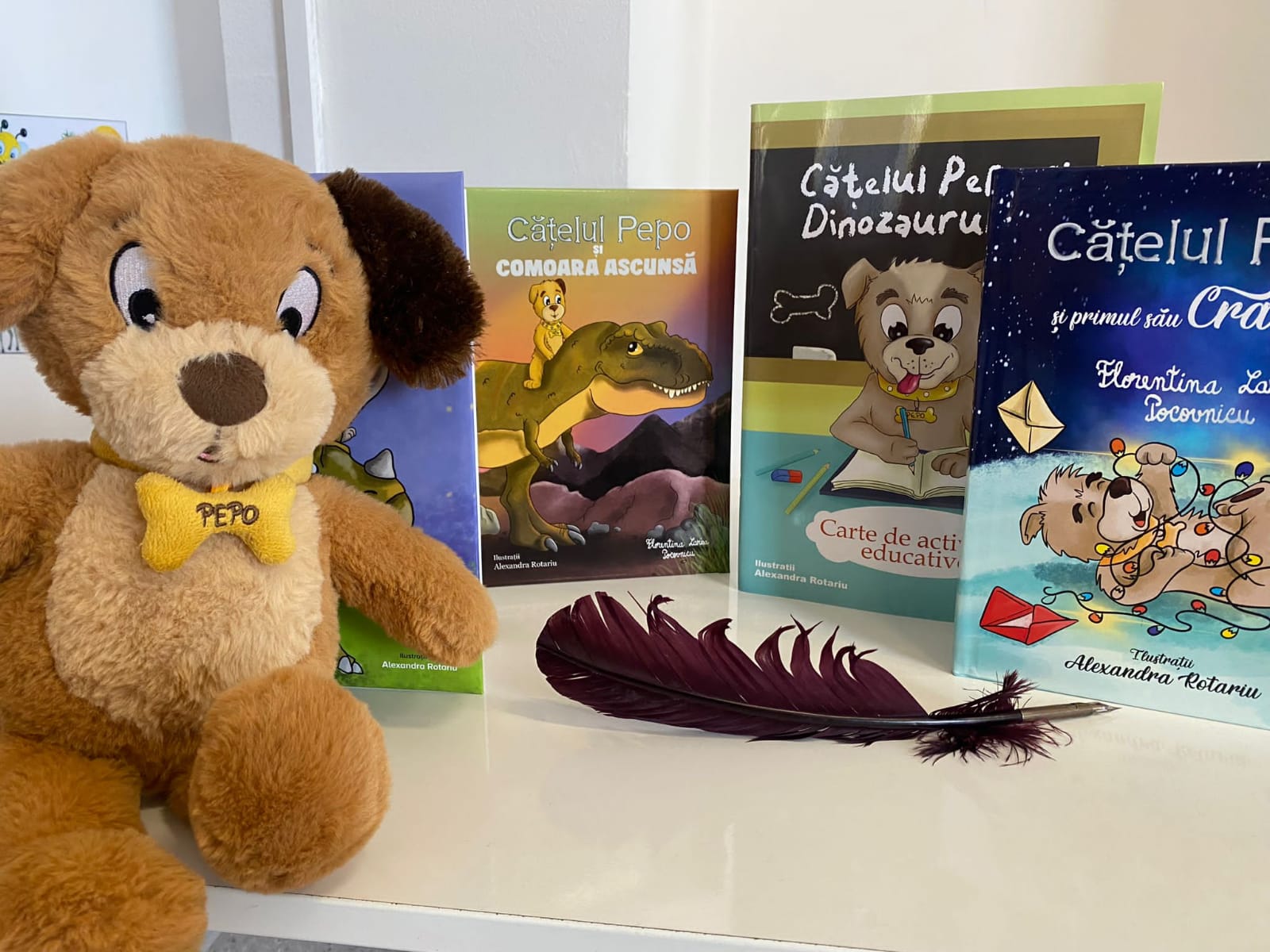Catelul Pepo si comoara ascunsa: Triceratops, primul dinozaur descoperit de catelul Pepo se simte singur la muzeu, asa incat il roaga pe acesta sa-i gasească prietenul. Pepo, alaturi de Pen și Lola, porneste impreuna intr-o aventura palpitanta plina de emotii și obstacole (56 pagini, copertă buretată, dimensiune 21 x 16 cm)